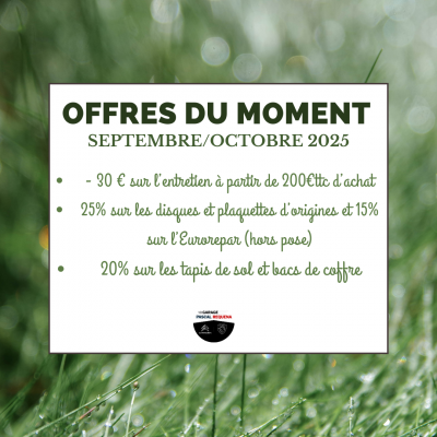 OFFRE DU MOIS DE SEMPTEMBRE / OCTOBRE 2025