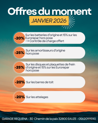 - 20 % sur les batteries d'origine et 15 % sur l'eurorepar (contrôle de charge offert)*
